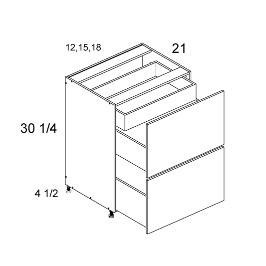 Torino White Pine altamax Four Drawer Vanity Base Cabinet - 12" Wide x 34-1/2" High x 21" Deep
