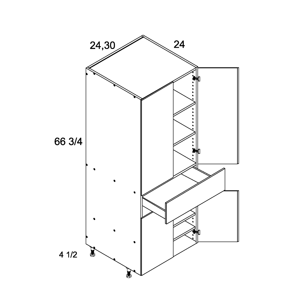 Palermo Gloss White altamax Tall Four Door One Drawer Utility Cabinet - 24" Wide x 72" High x 24" Deep