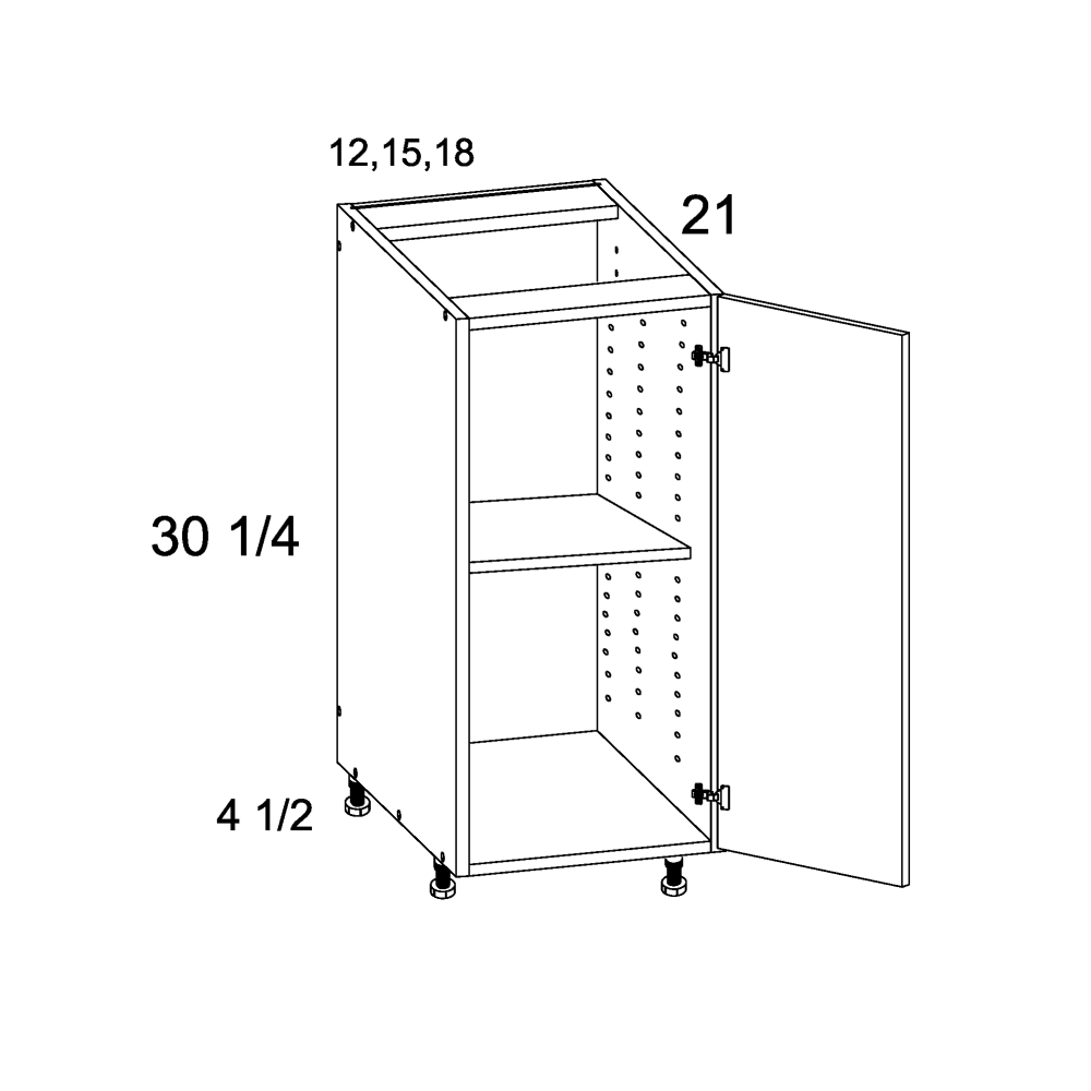 Palermo Gloss White Full Height One Door Vanity Base Cabinet - 12" Wide x 34-1/2" High x 21" Deep